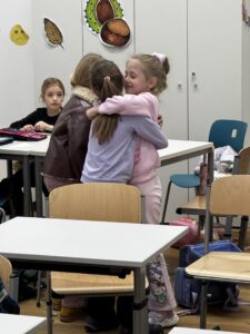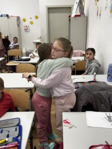 Nakon toga izrađivali su papirnate zagrljaje na koje su, prema svom skromnom mišljenju, zapisivali tko daje najbolje zagrljaje.