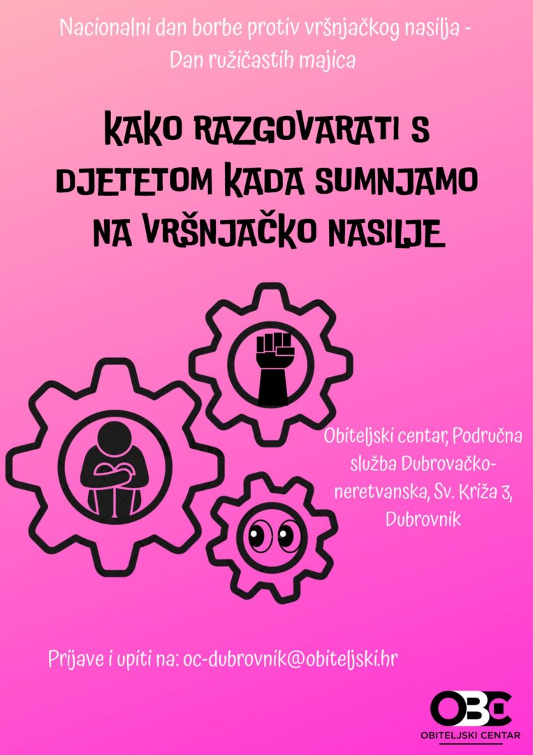 POZIV NA PREDAVANJE: „KAKO RAZGOVARATI S DJETETOM KADA SUMNJAMO NA VRŠNJAČKO NASILJE“